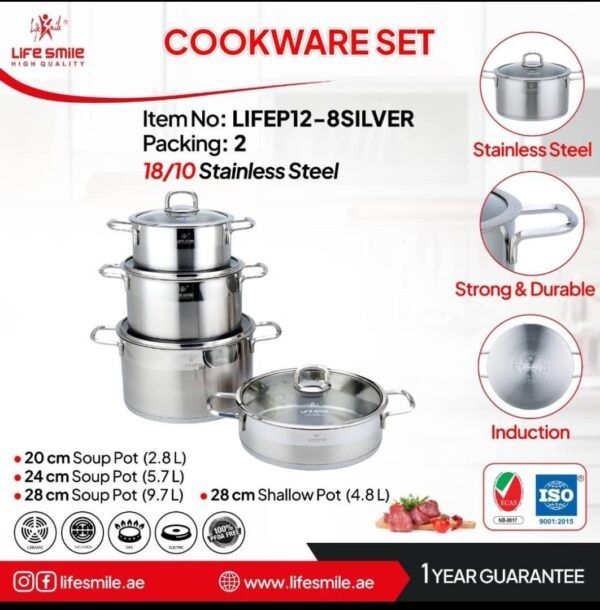 سرویس قابلمه ۸ پارچه استیل لایف اسمایل مدل Lifep12-8