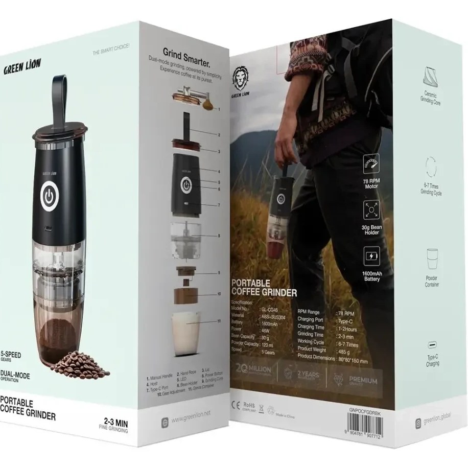 سایر ویژگی ها: جنس بدنه: ABS + استیل ضدزنگ SUS304 باتری: ۱۶۰۰ میلیآمپر توان مصرفی: ۴۶ وات ظرفیت مخزن دانه قهوه: ۳۰ گرم ظرفیت مخزن پودر: ۱۲۰ میلیلیتر تعداد سرعت: ۵ دنده سرعت چرخش: ۷۸ دور در دقیقه پورت شارژ: Type-C زمان شارژ: ۱ تا ۲ ساعت تعداد چرخه کاری با هر شارژ: ۶ تا ۷ بار