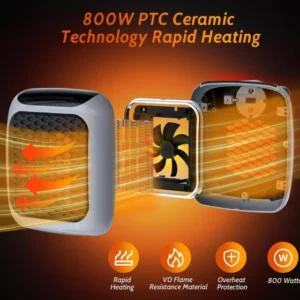 هیتر برقی با المنت های سرامیکی فن دار مدل HANDY HEATER دارای توان 800 وات توربو می باشد که فضایی گرم و مطبوع را برای شما در فصل سرد زمستان فراهم می کند. این هیتر برقی قابلیت کنترل عملکرد با استفاده از ترموستات را دارا می باشد. عملکرد فن داخلی دستگاه هیتر برقی فن دار توسط المنت ها در سطح وسیع تری توزیع شده و فضای بیشتری را گرمادهی کند. شبکه محافظ المنت ها از جنس پلاستیک فشرده می باشد که جلوه ای زیبا و ایمن به هیتر داده است.در محیط هایی مثل محل کار خانه و اشپزخانه و سرویس های بهداشتی قابل استفاده است. به صورت دوشاخه مستقیم به برق متصل میشود و فضا را اشغال نمیکند. صفحه نمایش دیجیتالی و کنترل از راه دور استفاده از این محصول را بسیار ساده و لذت بخش کرده است. همچنین دارای تایمر خاموشی خودکار قابل تنظیم میباشد. درجه حرارت بین 15 تا 32 درجه قابل تنظیم است و همچنین دارای دو حالت سرعت فن کم و زیاد میباشد.